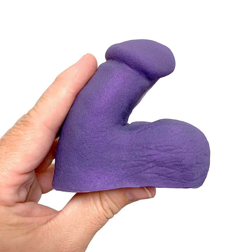 This toy is made of 100% silicone. Pure silicone toys are non-porous and can be washed with soap and water or toy cleaner. Non-vibrating 100% silicone toys can be sterilized in boiling water or in the top rack of your dishwasher. 100% Silicone is latex & Phthalate-free and safe for most people with chemical sensitivities. Note that while this item is silky soft, the back of it is slightly tacky on purpose so that is can have a bit of grip to stay in place in your packer holder.